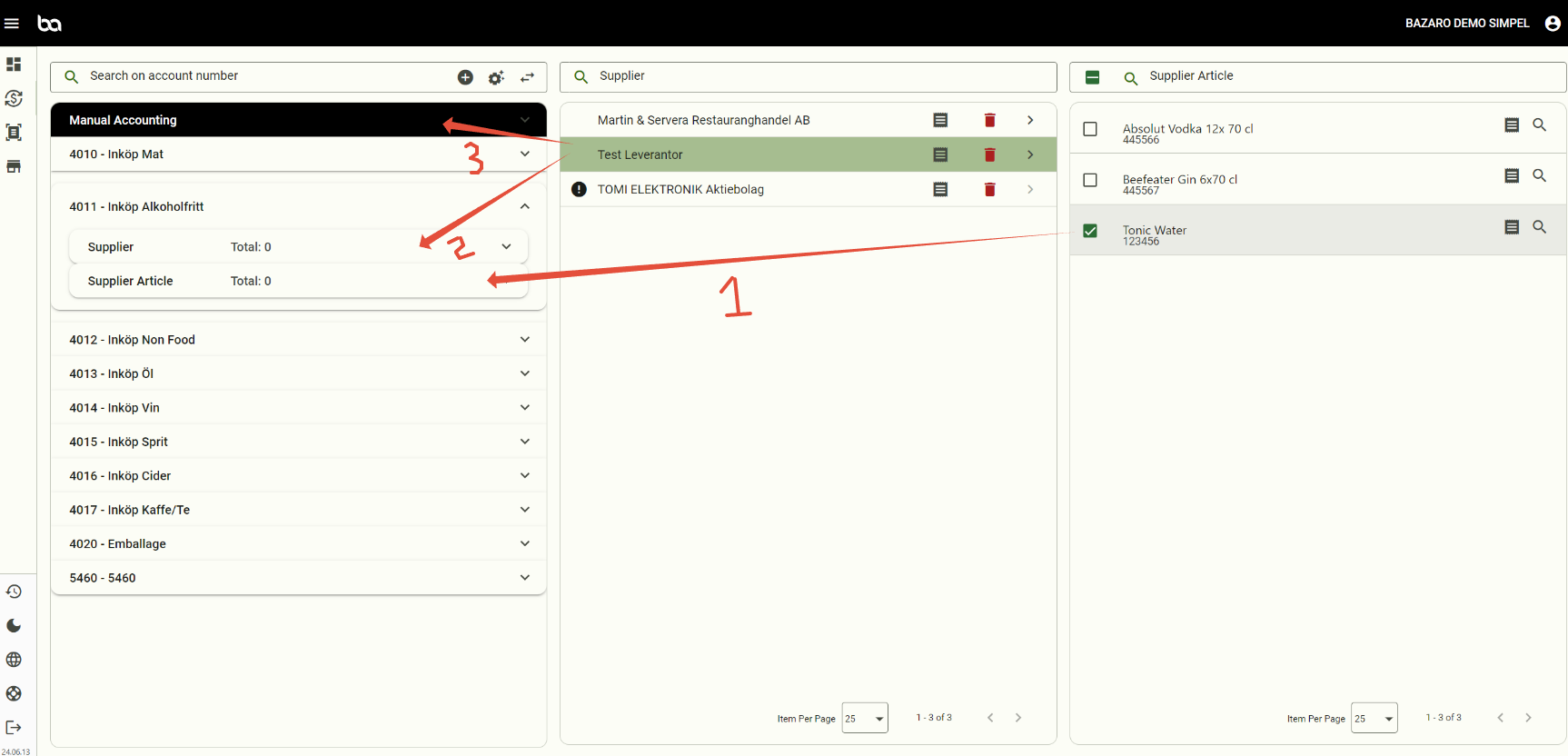 For manual accounting you drag the supplier to "Manual Accounting" (Arrow 3).