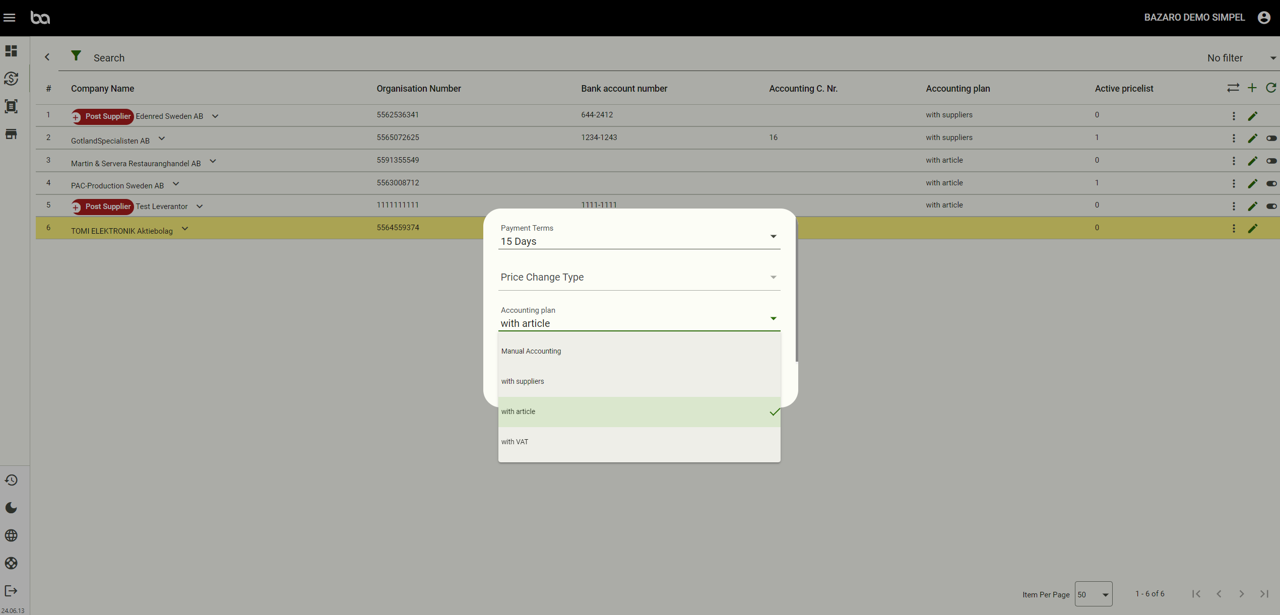 1, Article method - Perfect for suppliers that supply article heavy invoices such as food/drinks/consumables, where the articles need different accounting