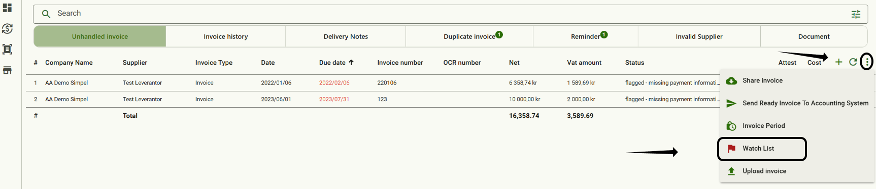 Do you need to see all invoices with a certain information. Then you can use watchlist.