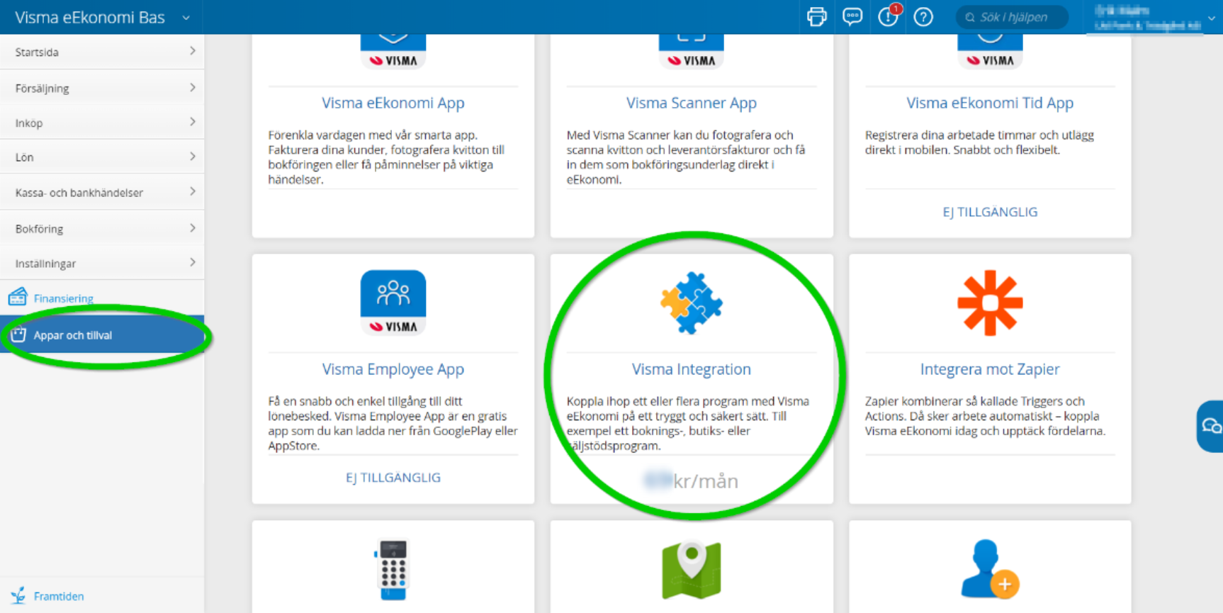 Steg 3, Klicka på ”Appar och Tillval” i vänstermenyn