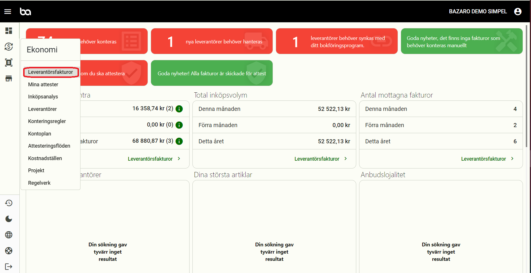 Steg 1. Gå till "Ekonomi" -> "Leverantörsfakturor"