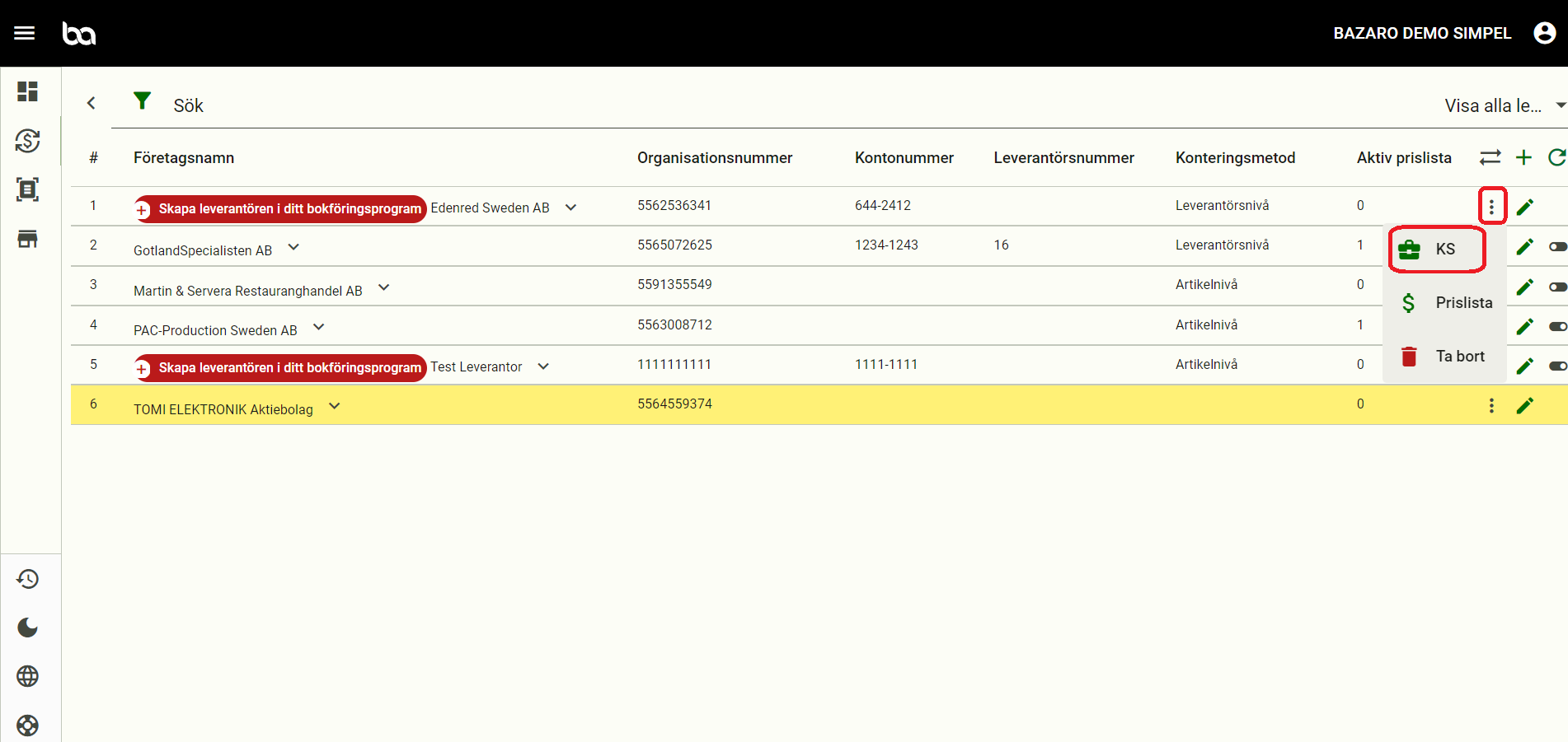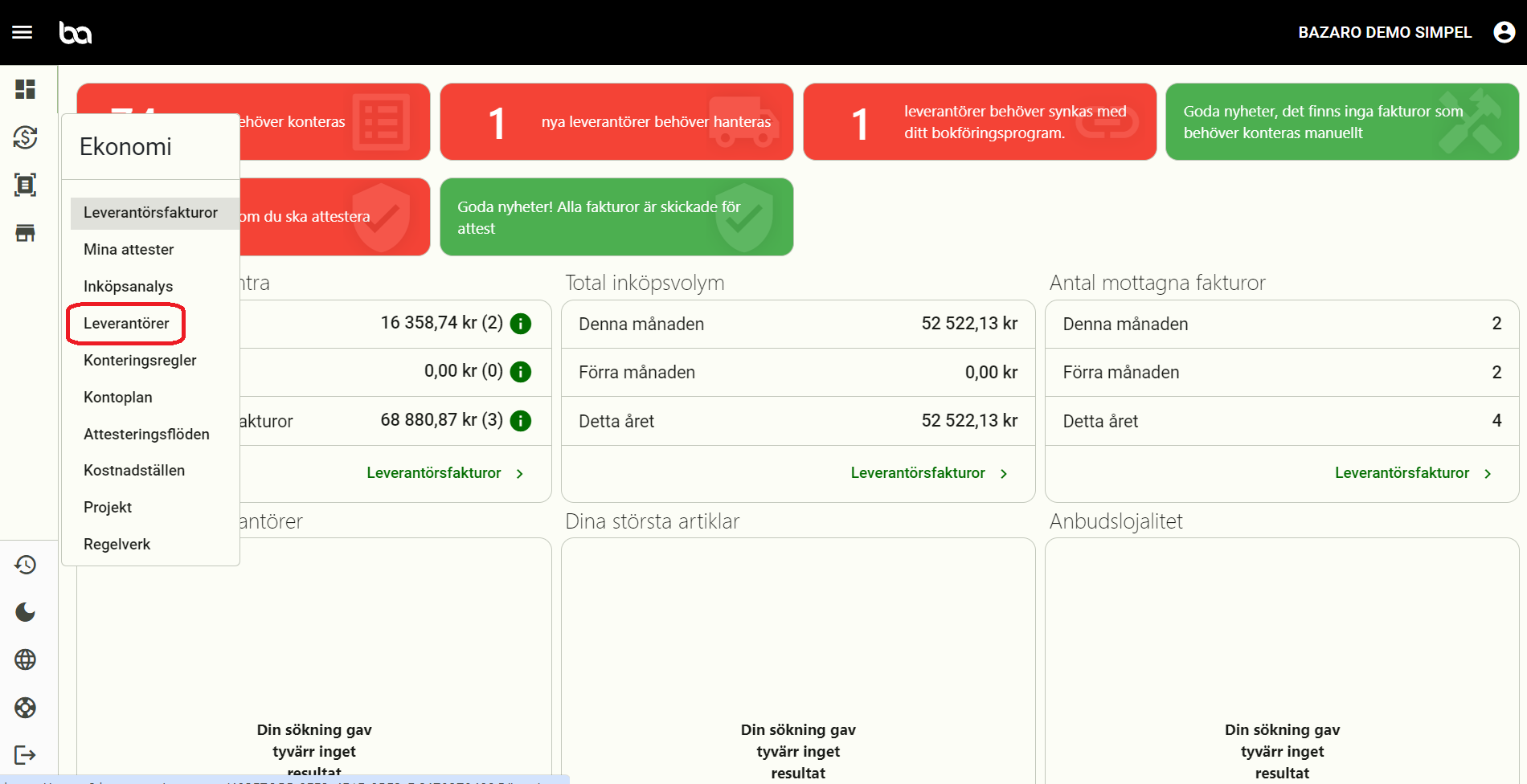 Steg 1, Gå till "Ekonomi" -> "Leverantörer"