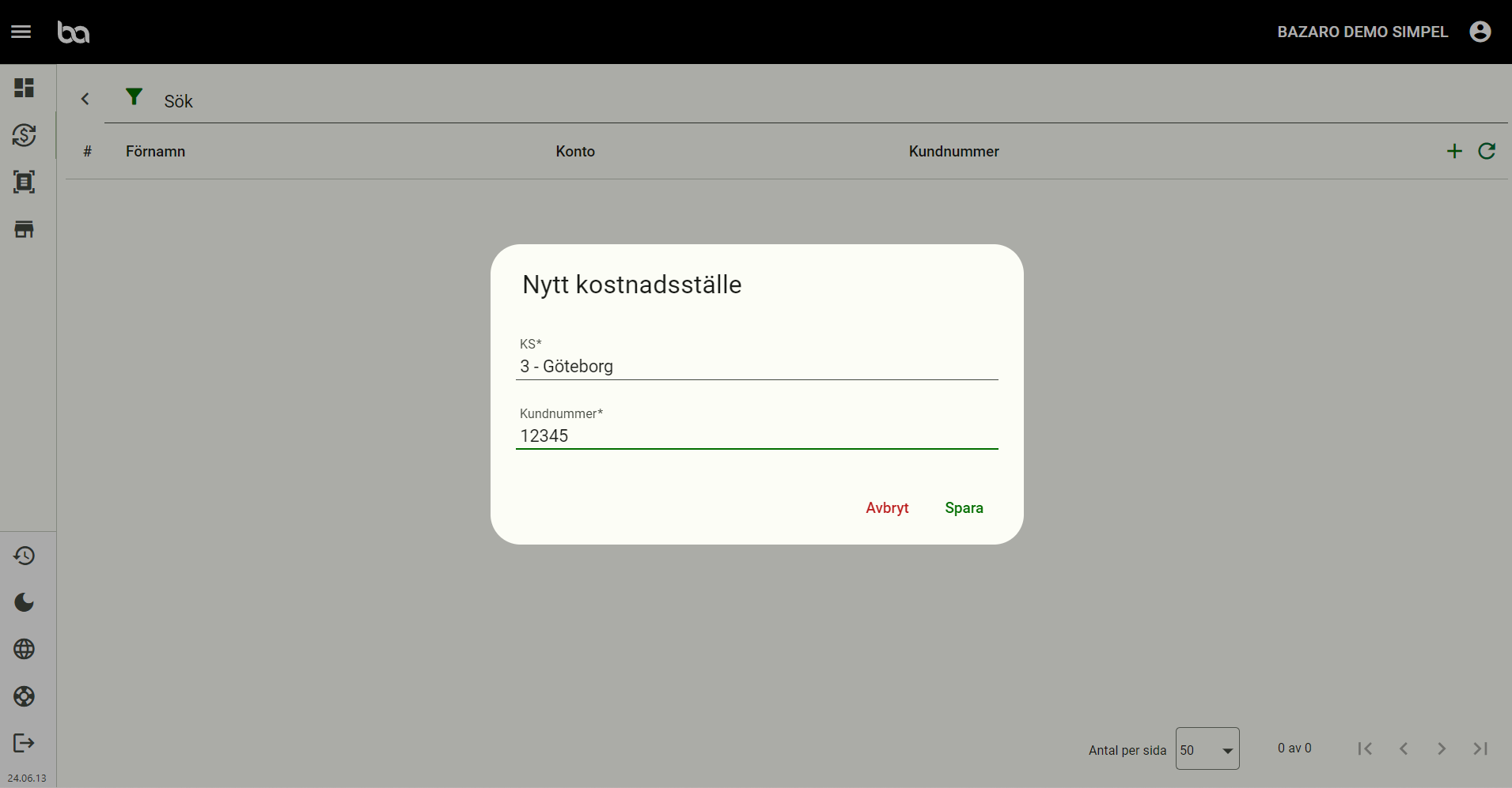 Steg 4, Koppla kostnadsstället till leverantörens kundnummer och klicka på "spara"