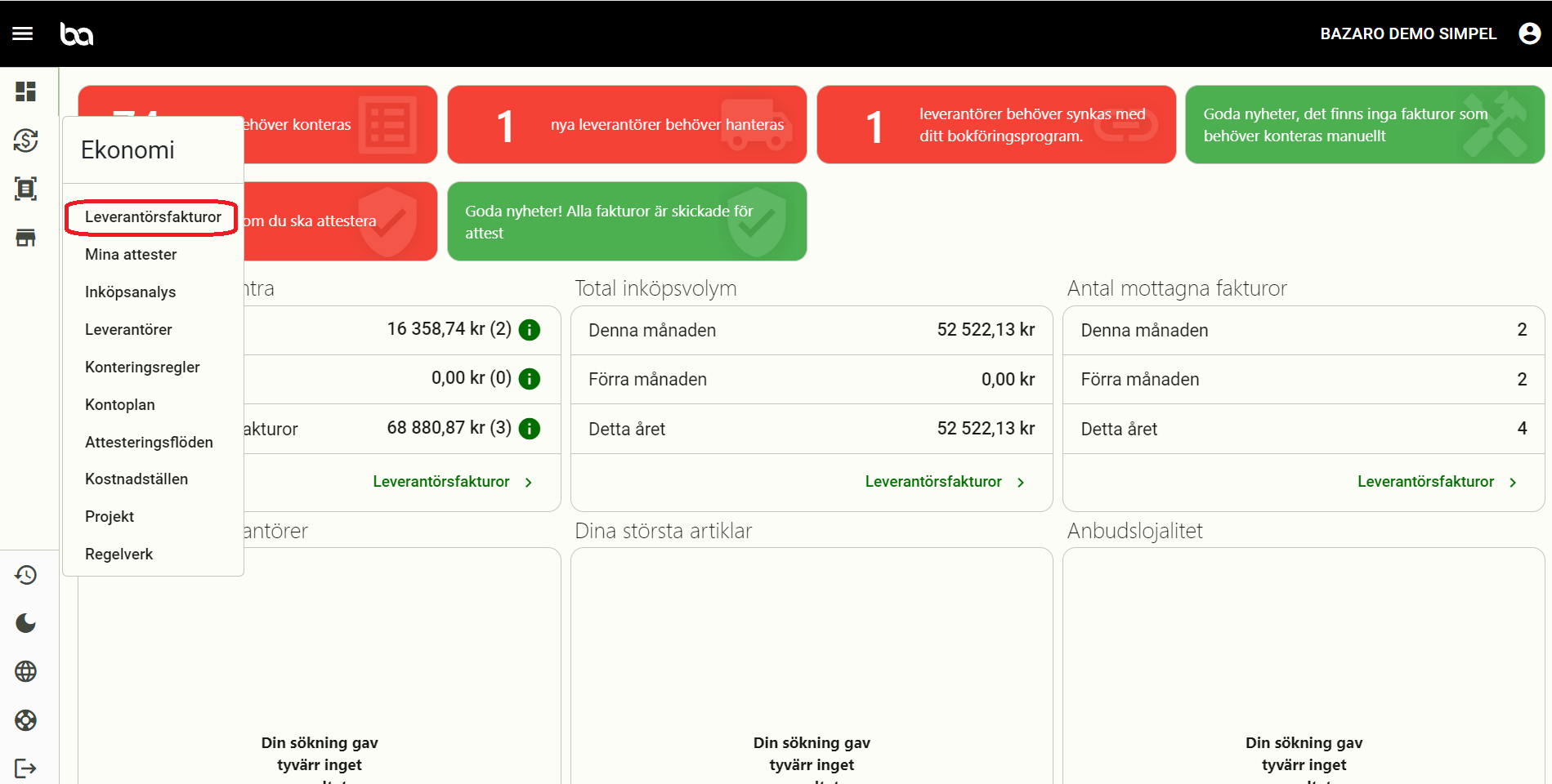 Steg 1, Gå till "Ekonomi" -> "Leverantörsfakturor"