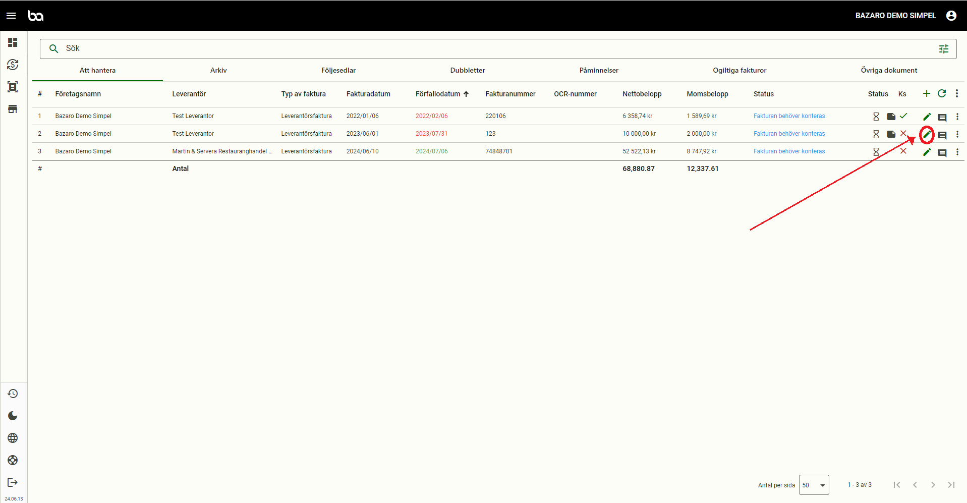 Steg 2. Klicka på pennan på den faktura som du vill kontera manuellt