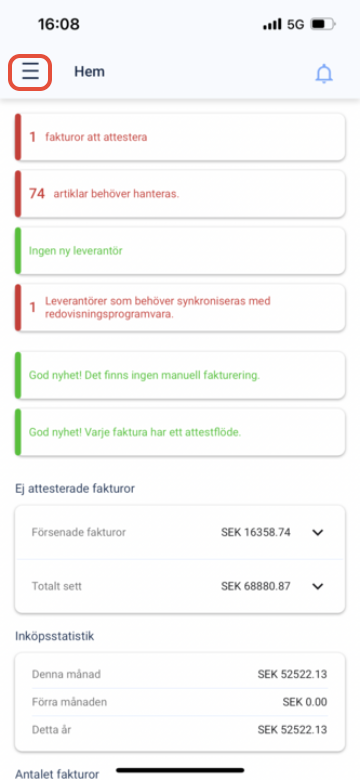 Steg 1, När du är inloggad, klicka på de tre strecken i vänstra hörnet.