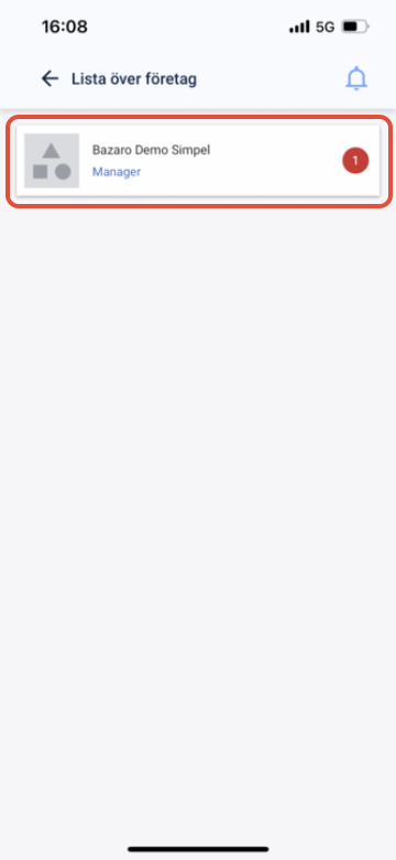 Steg 3, Om du är medlem i flera företag kan du i detta steget välja vilket företag du ska gå in och attestera en faktura i