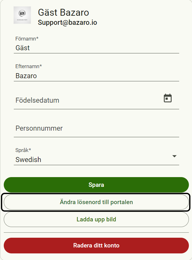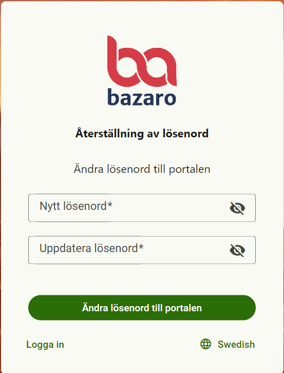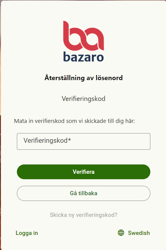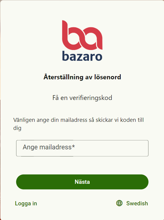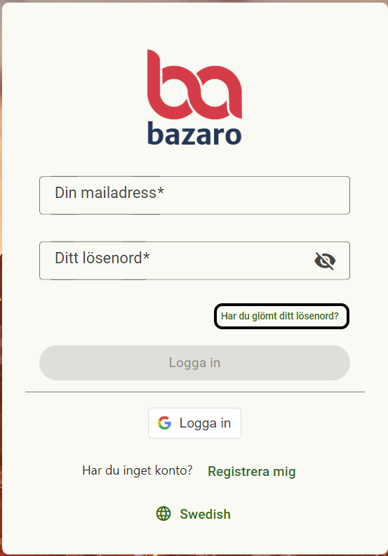 Steg 1, Gå till app.bazaro.se > Har du glömt ditt lösenord?