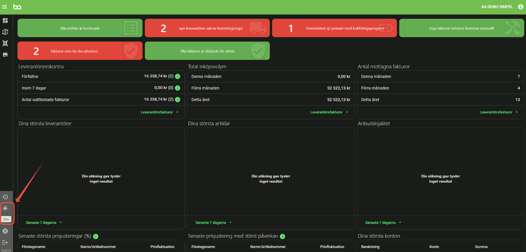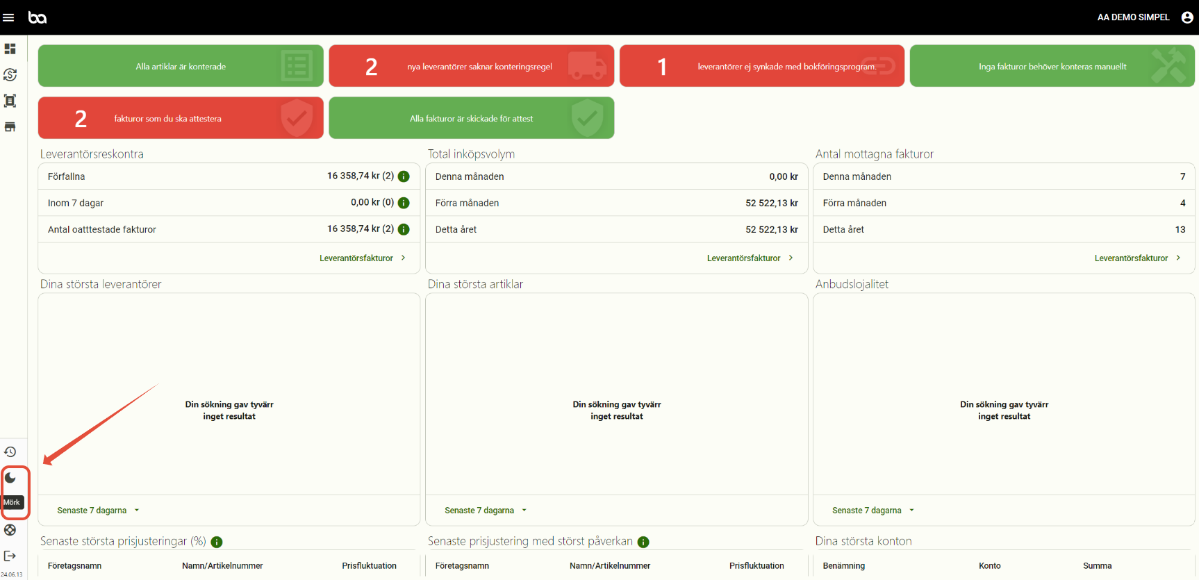 Steg 1, Klicka på månen längst ner i vänstra hörnet