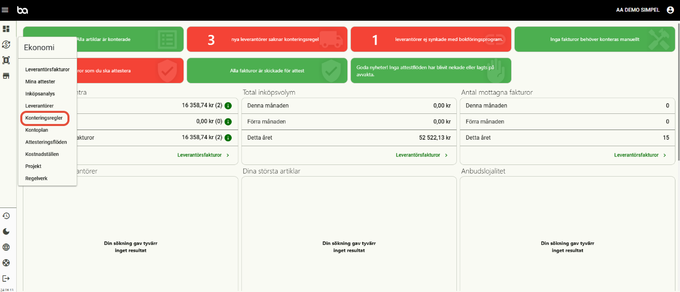 Steg 1, Gå till Ekonomi>Konteringsregler