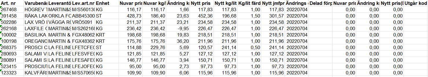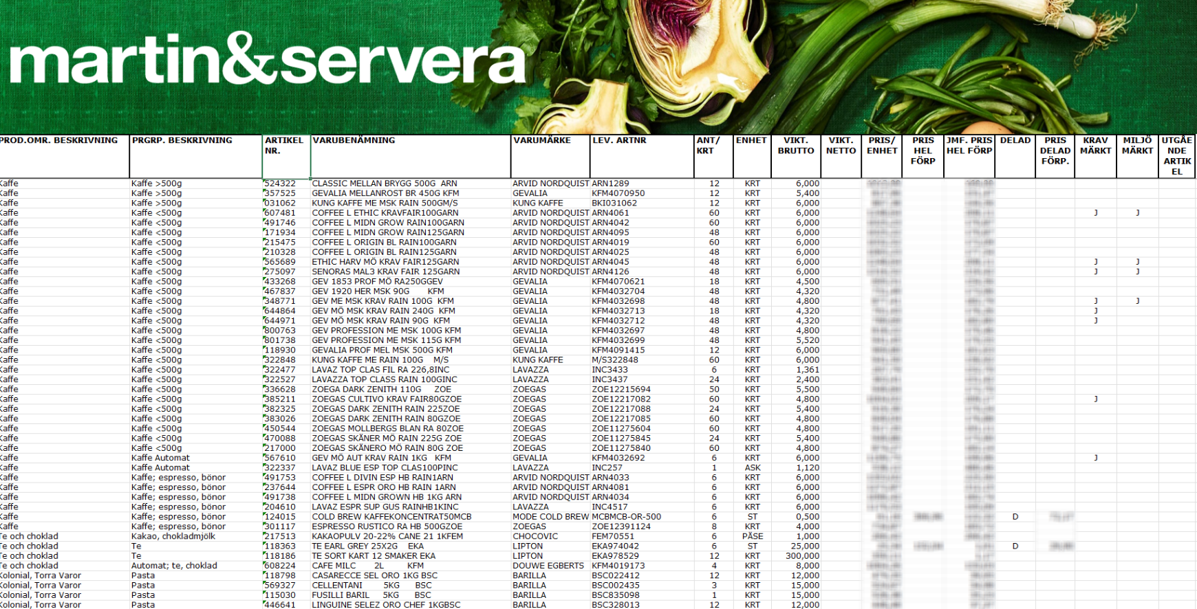 När det kommer till prislistor från Martin & Servera så brukar dom komma i två olika format: