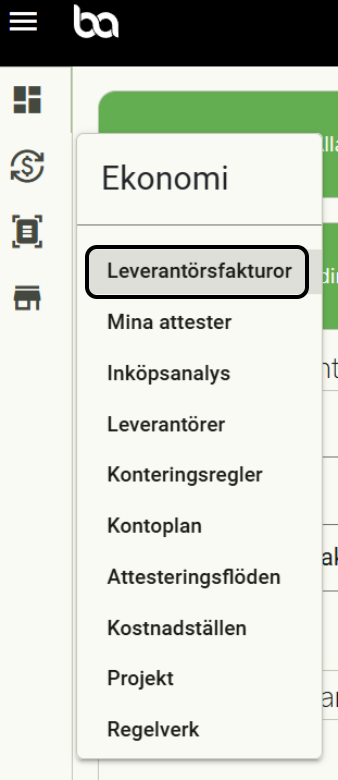 Steg 1, Gå till ekonomi > leverantörsfakturor