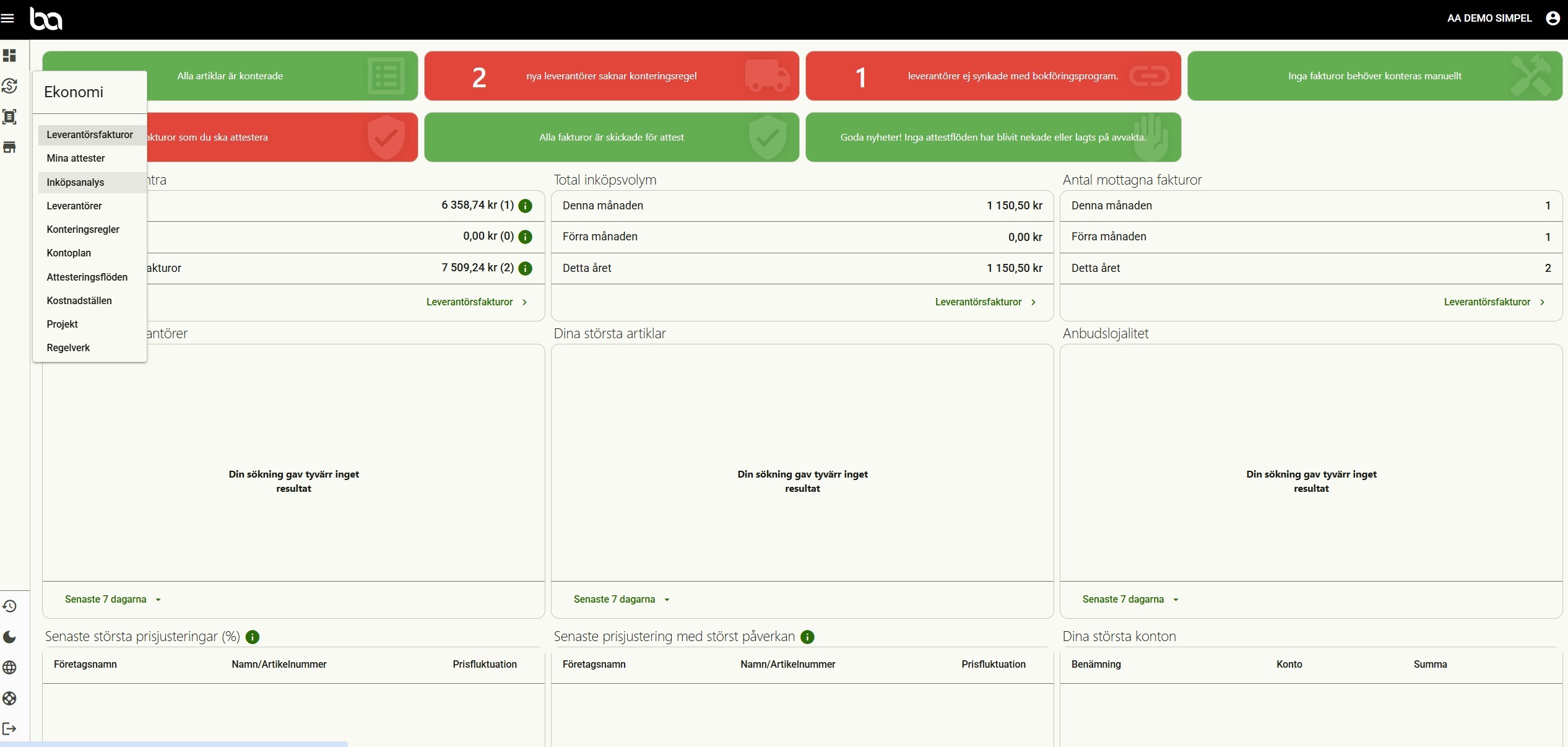 Steg 1, Gå till Ekonomi>Inköpsanalys
