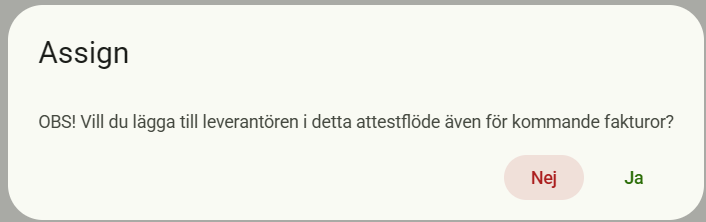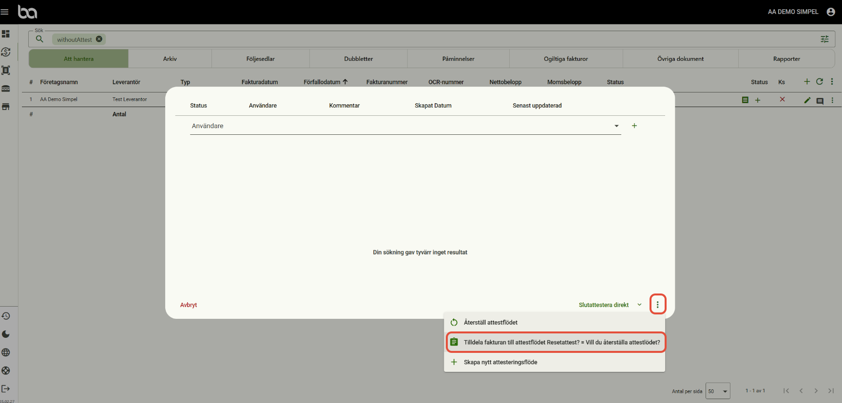 Klicka på "Tilldela fakturan till attestflöde Resetattest? = Vill du återställa attestflödet?"